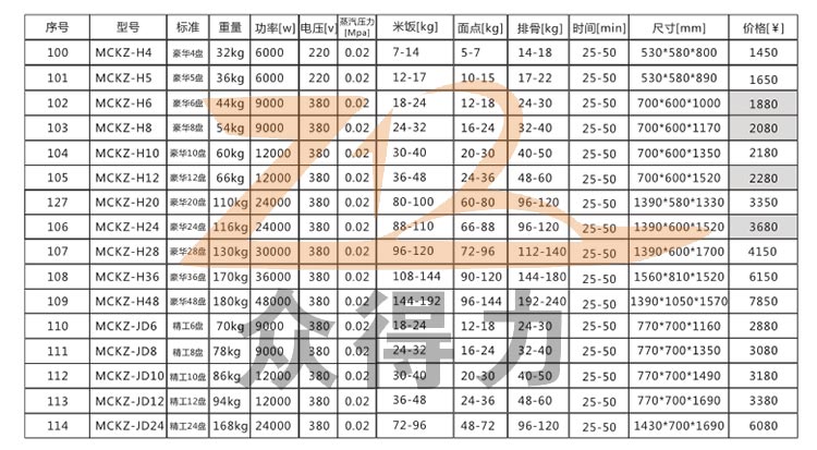 鼎美電熱系列蒸飯柜詳細(xì)技術(shù)參數(shù)及統(tǒng)一報價: