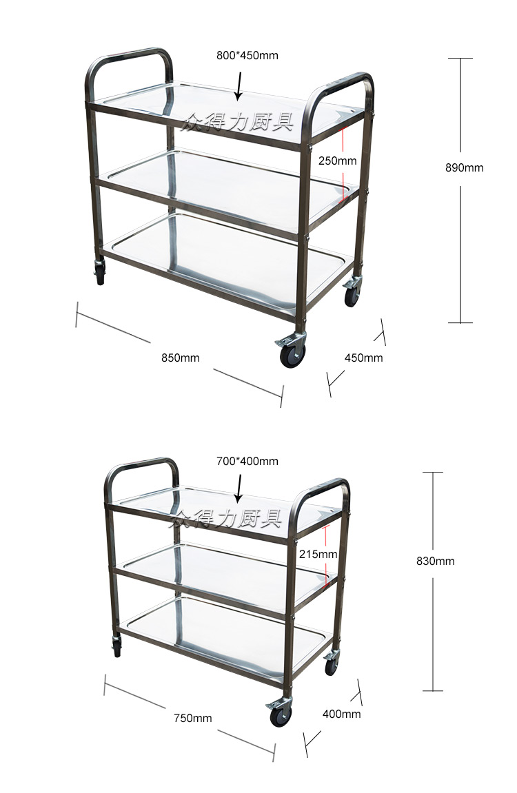 眾得力不銹鋼餐車系列價(jià)格及尺寸: