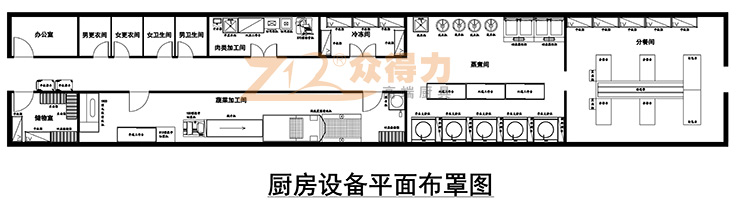 眾得力高端廚具 2500人中央廚房配送中心規劃設計